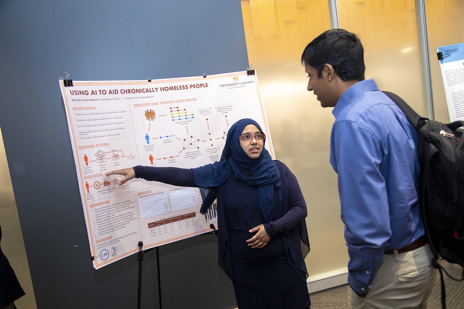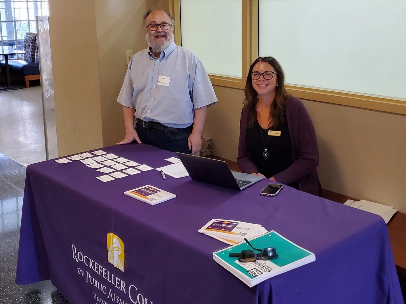 The Rockefeller College of Public Affairs and Policy hosted a forum highlighting its breakthrough research in areas such as criminal justice, traffic safety and government technology. Presentations included the Center for Policy Research, the Hindelang Criminal Justice Research Center, the Professional Development Program, the Center for Women in Government and Civil Society, the Institute for Traffic Safety Management & Research and the Center for Technology in Government.