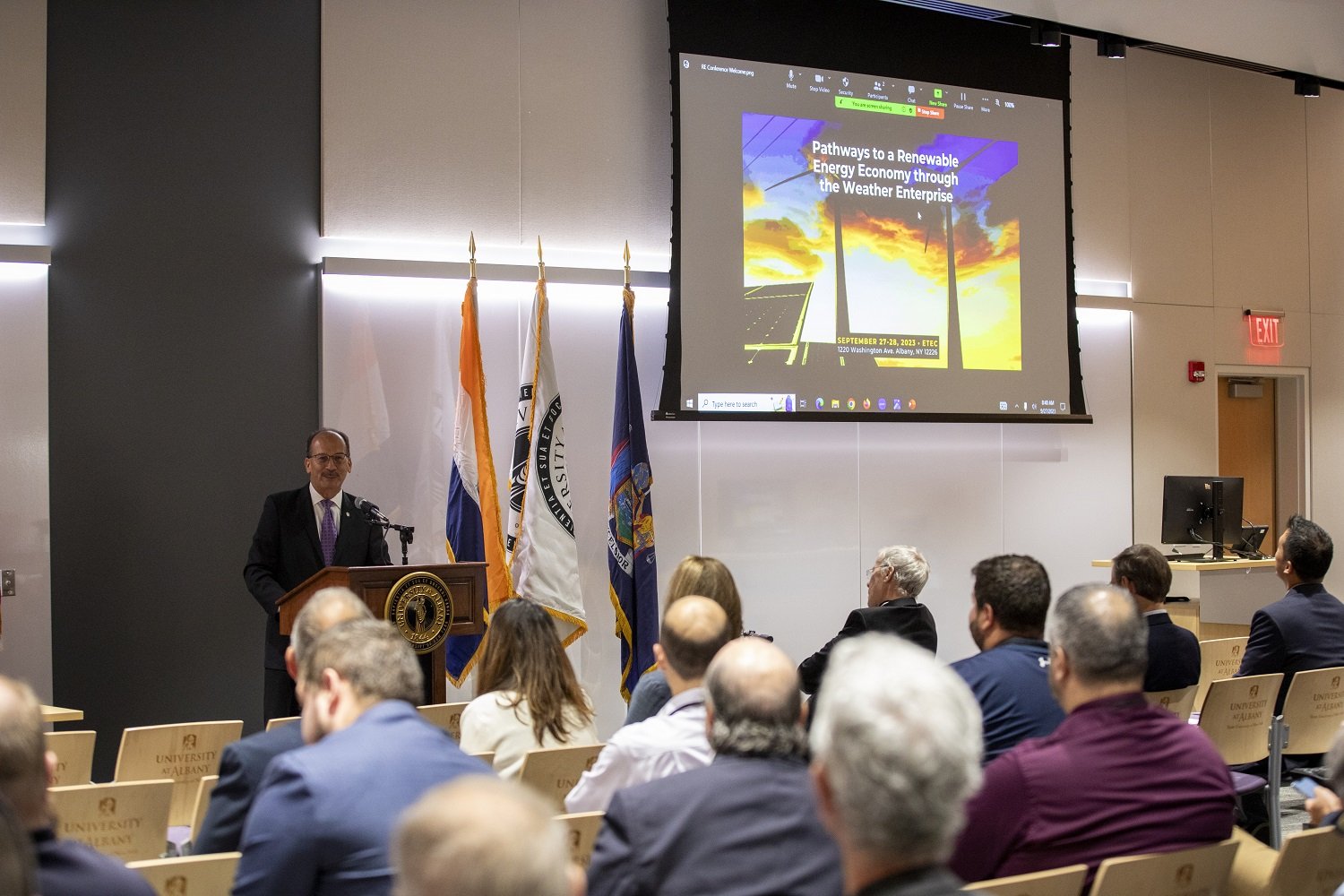 ALBANY, N.Y. (Oct. 3, 2023) — The University at Albany welcomed more than 130 attendees last week to explore the role that weather research and technology will play in the renewable energy transition.
