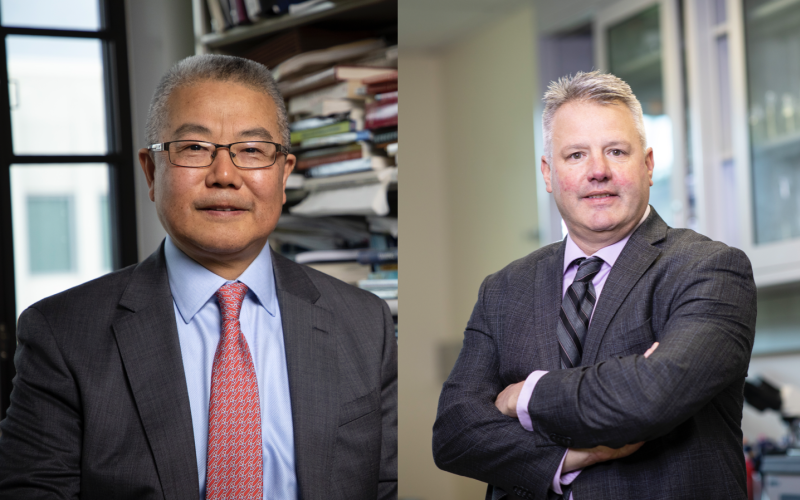 ALBANY, N.Y. (May 18, 2023) — Two University at Albany professors — Thomas Begley of the RNA Institute and Department of Biological Sciences, and Zai Liang of the Departments of Sociology and East Asian Studies — have been promoted to SUNY’s Distinguished Academy, the highest academic rank within the SUNY system, conferred by the State University Board of Trustees. Both have achieved the designation of Distinguished Professor, which recognizes faculty members who have made significant contributions to the research literature of their fields and attained national or international prominence for their expertise.