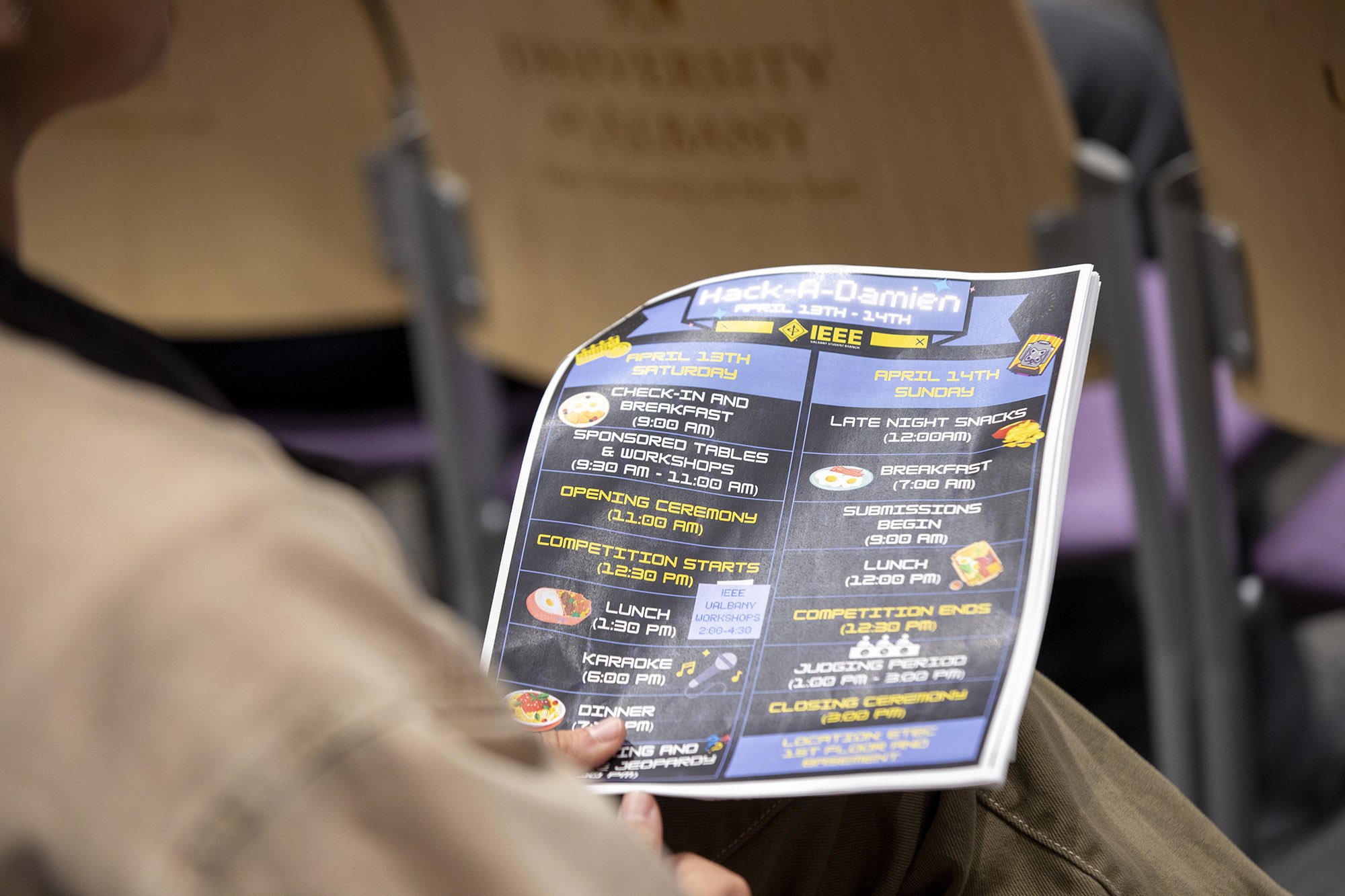 ALBANY, N.Y. (April 16, 2024) — Motivated by their passion for gaming, technology and camaraderie, students from UAlbany IEEE set out to bring a new experience to campus this year with the first “Hack-a-Damien” from April 12-14.