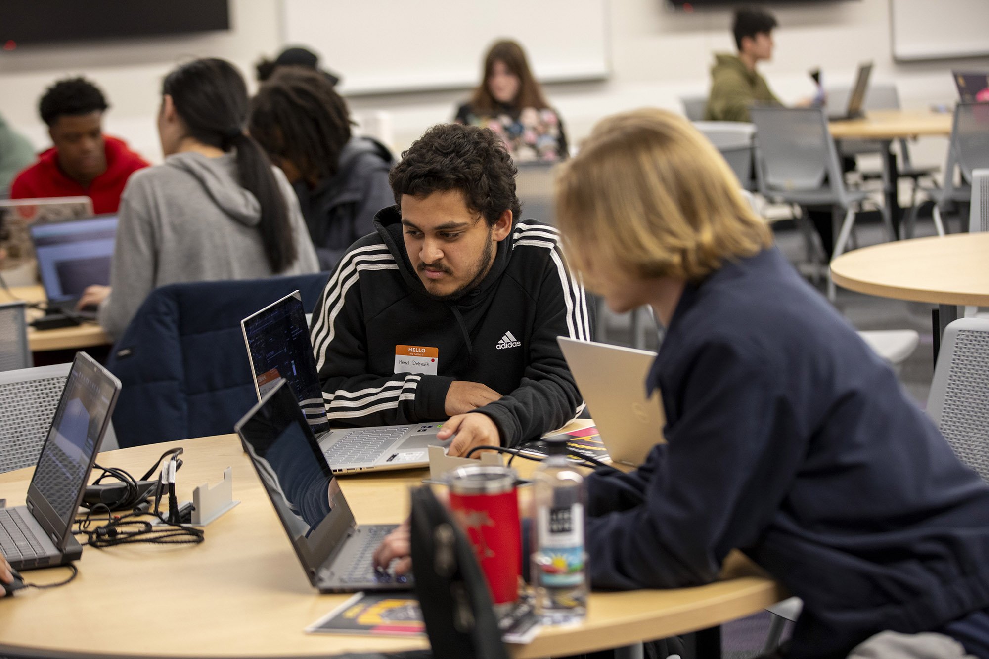 The event combined a traditional hackathon (a 24-hour competition in which teams compete to solve a complex computer programming problem) with a series of technical workshops, conversations with game developers, as well as displays from numerous vendors and industry partners. With a theme of “same level, different challenges,” the event welcomed more than 120 students from across New York to have fun and compete for prizes at UAlbany’s state-of-the-art ETEC facility while developing an interactive game for judges’ panel.