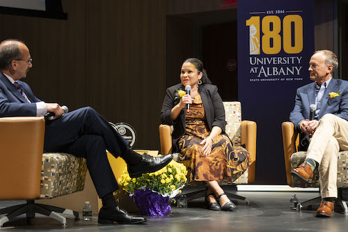 “These increases are a major accomplishment,” Rodríguez said. “You have all seen the headlines about enrollments falling, an enrollment cliff looming and colleges closing. We have even felt those impacts right in our backyard. But at UAlbany, we are growing, thanks to the hard work and dedication of each of you.”