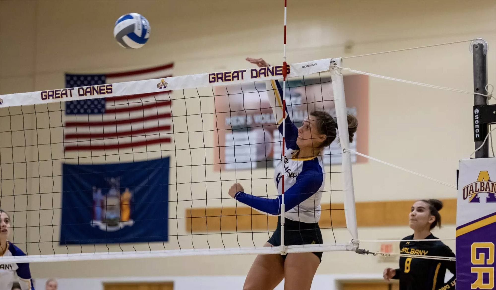 Woroniuk, of Red Deer, Alberta, Canada, finished sixth in the America East and first on the volleyball team with 3.11 kills per set in her junior year for the Great Danes. She majored in business administration.