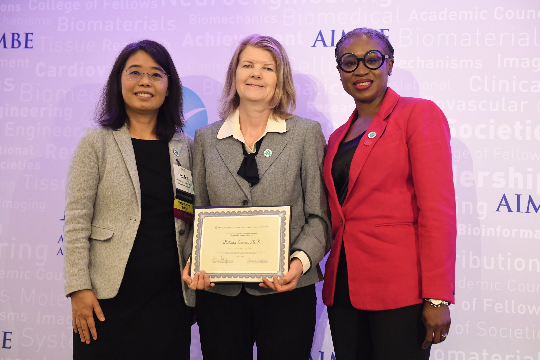 Larsen and Xie were inducted into the AIMBE College of Fellows at a ceremony held in Arlington, Virginia earlier this week. They join CNSE Dean Michele Grimm, who has been a member of the AIMBE College of Fellows since 2018.
