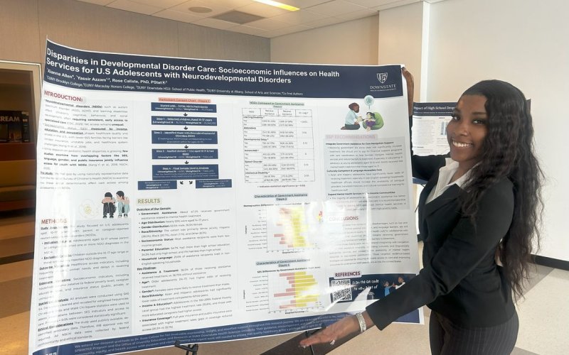 Under the guidance of SUNY Downstate’s Rose Calixte, Allen explored how systemic barriers such as language access, provider shortages and medical mistrust affect healthcare access and quality for adolescents with neurodevelopmental disabilities in the United States.