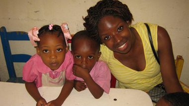 UAlbany student Renee Kumaga with children at FILSECCAM Elementary School in Port-au-Prince, Haiti. |