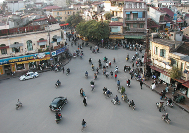 A busy street in and around Hanoi Medical University, where public health professor Diane Dewar will visit and teach students via videoconferencing this fall.