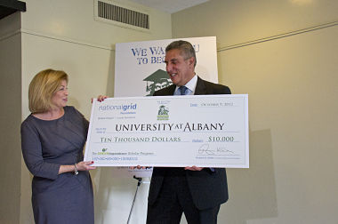 ALBANY, N.Y. (October 9, 2012) -- The University at Albany and the National Grid Foundation (NGF) today announced the establishment of a GreenDependence scholarship fund. The $10,000 stipend will be presented to a UAlbany undergraduate student who demonstrates strong 'green' leadership. The scholarship will be awarded at the end of the fall 2012 semester.