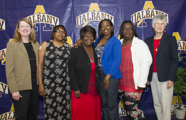 Participants in the community-based Women's Health Project in Hudson, N.Y., pose at the President's Awards for Exemplary Community Engagement event. (Photo by Mark Schmidt) |