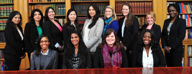 The 2014 class of Fellows on Women & Public Policy: seated (L to R), Sable Lynch, Laura Salkowe, Samantha Baldock, and Heidi Iyok; standing (L-R) Nusrath Ainapore, Mary Sharif, Elise Puzio, Wanling Su, Diana Abbas, Victoria Graf, Kari Siddiqui, Kathleen Brady Stepien, and Mwaka Nachilingo. |