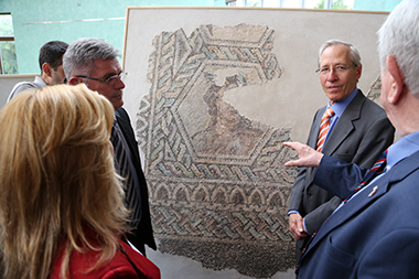 ALBANY, N.Y. (Dec. 11, 2014) -- UAlbany Professor of Art and Art History Michael Werner is in Serbia with U.S. Ambassador Michael D. Kirby to present the restored and wall-mounted Mercury Mosaic and sections of the residential room geometric mosaic now undergoing conservation in the Roman-era Imperial Palace in the Sirmium Preservation Shelter. The Ambassador will also visit Sremska Mitrovica’s Mosaic Restoration Laboratory, which has hosted archaeology students and researchers from UAlbany in connection with the project.