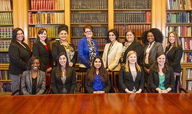 2015 Fellows on Women & Public Policy: seated (l-r): Sandra Sanya, Marie Lovato, Saira Khan, Christina Miller, and Erin Trowbridge; standing (l-r): Nancy Allen, Kelly Smith, Brittany Glenn, Desiree Farley, Norain Siddiqui, Emily Steinbach, Jasmine Clemons, and Michelle Feder Bianchi. (Photo by Mark Schmidt) |