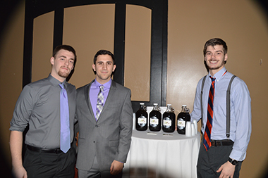 UAlbany students recently presented their new product, ChugaChaga Tea, to Startup Tech Valley. From left, Adam Kaiser, company representative, Marc Iskandar, president, and Luke Evans, CEO. |