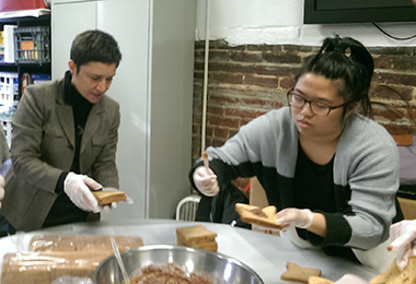 Semester in Washington Director Meredith Weiss and student Melody Tien prepare sandwiches for McKenna’s Wagon, a mobile food truck that serves Washington’s homeless and hungry.