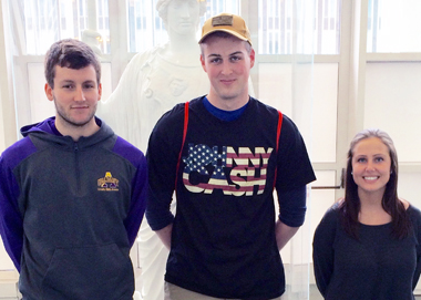 UAlbany Math and Actuarial Club board members Sam Axtell (president), Joseph Gannon (vice president), and Theres Plano (treasurer).