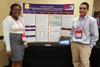 Members of the University’s aeronautics team, under the guidance of UAlbany senior Miguel Ramirez and SUNY Polytechnic Institute Professor Gregory Denbeaux, were the first-place winners in the senior division of the physical science category for a space balloon launch. STEP students Ariyanna Chillis (Colonie Central High School) and Manuel Santiago (Notre Dame-Bishop Gibbons) presented results from their project, which occurred in Utica on March 5. Taylor Blue Clarke (Bishop Maginn High School) and Frederick Marshall (Green Tech Charter High School) contributed to the investigation.