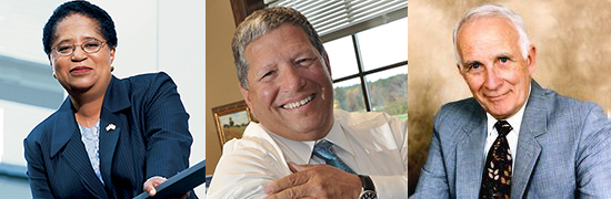 The University at Albany Foundation's Citizen Laureates for 2016, left to right: Dr. Shirley Ann Jackson, Angelo Mazzone, and Dr. Walter L. Robb. |