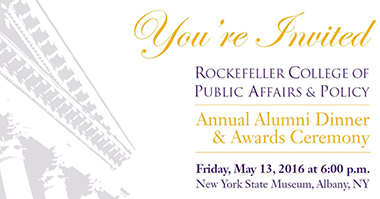 The College's 2016 Alumni Awards, given for achievements in the areas of political science, public administration and public service, will be presented at the Alumni Dinner & Awards Ceremony, beginning at 6 p.m. and held on the 4th floor of the New York State Museum in Albany.