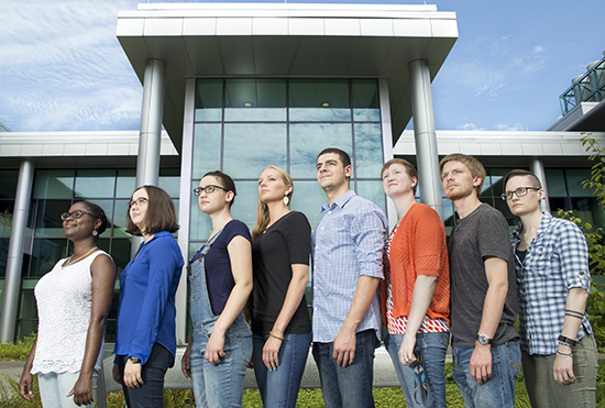 RNA Fellows from 2015-16 and 2016-17, left to right, Marissa Louis, Rebecca D'Esposito, Casey Warszycki, Rachel Nelson, Botros Toro, Rachel Cary, Justin Waldern and Alicia McCarthy. (Photo by Carlo de Jesus) |