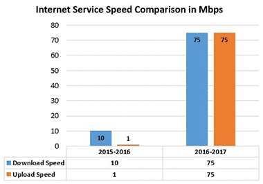 Student Affairs and Information Technology Services (ITS), contracting with Apogee, Inc., has increased download speeds 650% from last spring. The boost in upload speed is about 10 times faster than that.