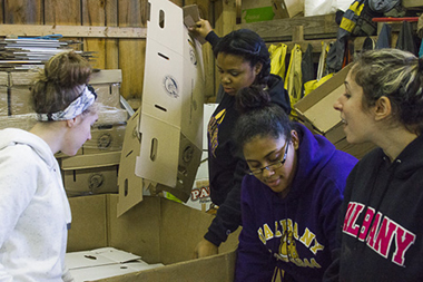 UAlbany students box vegetables for a local food pantry in 2015. (Photo by Mark Schmidt) |