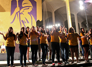 UAlbany students gather at a Candle Lighting Ceremony welcoming incoming freshmen and transfers. (Photo by Paul Miller)