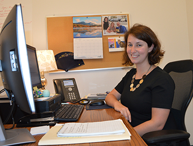 Lauren Bailey '13, at her desk at the Capital District Transportation Authority. |