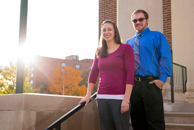 Sophomore Keily Linger and senior Christopher Pounds, two of the first 100 CEHC majors, pose at the Downtown Campus, site of many CEHC classes in the program's second year of operation. (Photos by Carlo de Jesus) |