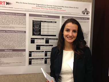 Hoxha, who began doing research at UAlbany as a freshman, was recently named a finalist in a national competition of student research, including postdoctoral student research, at the annual conference of the Study of Terrorism and Responses to Terrorism. Aided by a fellowship from the National Consortium for the Study of Terrorism and Response to Terrorism, Hoxha has conducted independent research on terrorism in Eastern Europe.