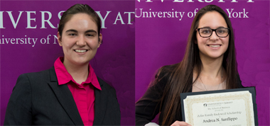 Sanfilippo recalled that she chose UAlbany both for its great value and a special School of Business program in finance — which, she said, has already paid dividends. “The Financial Analyst Honors Program has helped me think more critically, has helped me improve on my computer and technical skills, and has helped me land a summer internship at Deutsche Bank.”