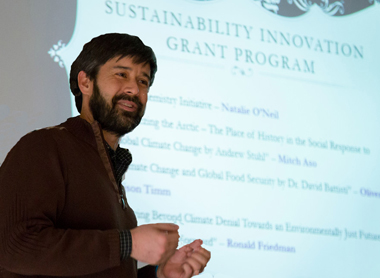 Mitch Aso, an assistant professor in the History Department, used his Sustainability Innovation Grant to bring in a speaker on climate change in the Arctic. (Photos by Carlo de Jesus) |