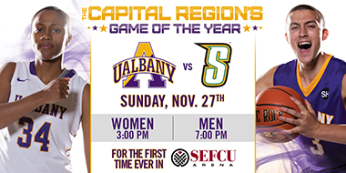 On Sunday, Nov. 27, the University at Albany men’s and women’s basketball teams will be hosting cross-town rival Siena College for the annual “Albany Cup” game. It will be the first time the doubleheader is hosted at SEFCU Arena in Division I series history.