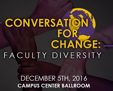 ALBANY, N.Y. (Dec. 2, 2016) — A conversation about faculty diversity will be held Monday, Dec. 5, at 5 p.m. in the Campus Center Ballroom.
