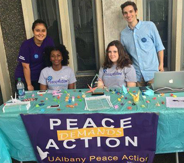 ALBANY, N.Y. (December 12, 2016) — Providing community service and a voice for the underprivileged, and facilitating campaigns and presentations by members who are passionate about social justice, human rights and peace is the stated goal of UAlbany’s Peace Action student organization.