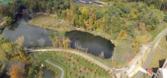Indian Pond collects rainwater, which is treated and used for campus irrigation. (Photo by Gary Gold) |