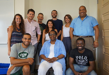 Shirley Jones, center, seated, initiated the summer tours to Africa. Back row, at right, Robert Miller, who now leads the tours. |