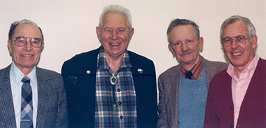 From left, Raymond Falconer (founder of the lecture series), Vincent Schaefer (founder of ASRC), Bernard Vonnegut and Duncan Blanchard.