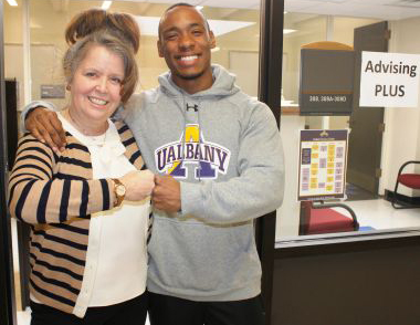 Jayvon Evans, at right, with his mentor Barbara Brown, coordinator of Advising Plus. (Photos by Naomi McPeters) |