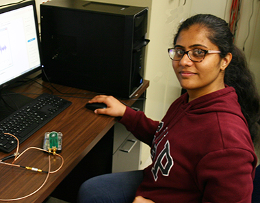 Priti Pachpande, a PhD candidate in computer science at CEAS, works on the ultra-wideband technology project at CTG. |