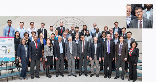 Economists gather at the International Monetary Fund workshop on economic forecasting, where they paid tribute to Kajal Lahiri, front row, sixth from left, and in the inset. |