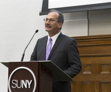 I would like to thank Governor Cuomo, Chairman McCall, the members of the Board of Trustees, Chancellor Zimpher for your confidence. It is truly and greatly appreciated. I am also grateful to the chair of the search committee [Michael Castellana]. And to all the members of the search committee: I sincerely appreciate your work and I am very thankful for your decision. Thank you very much.