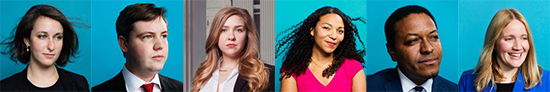 The Rockefeller College of Public Affairs and Policy alumni named to City & State’s annual “40 under 40” list are, left to right, Lauren Bailey, Cory Loomis, Jennifer Wilson, Jillian Faison, Joe Bonilla and Kathleen Brady-Stepian.
