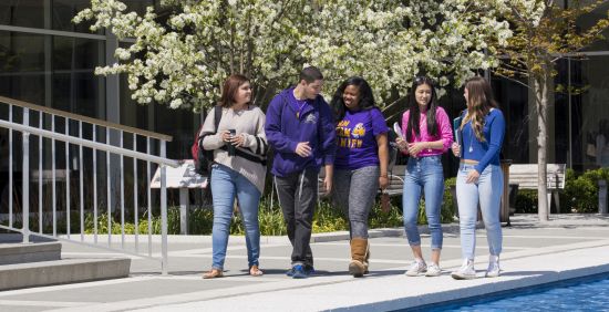 Students walk on the campus of UAlbany, which was ranked among the Money’s top 100 “Best Colleges for Your Money.” (Photo by Mark Schmidt)