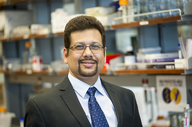 Dr. Bijan K. Dey in his research laboratory at The RNA Institute (Photo by Mark Schmidt).