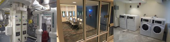 Herkimer Hall upgrades include all new plumbing, electrical and lighting systems, a study lounge and new laundry facilities. (Photos by DASNY) |