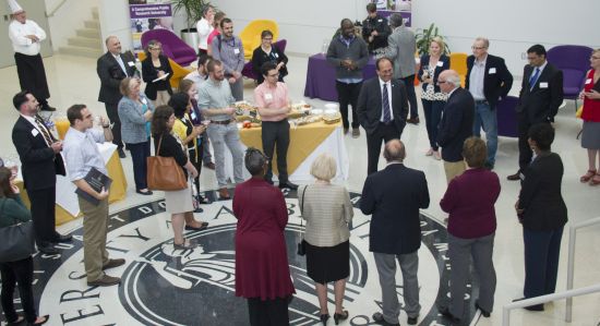 The group toured the Uptown Campus, including the new Campus Center addition, the Academic Podium and libraries, before gathering with colleagues, deans and members of the executives committee for a wine-and-cheese reception in the University Hall Atrium.