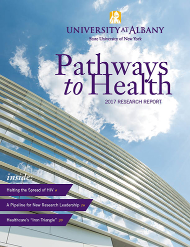 ALBANY, N.Y. Sept. 22, 2017) — Vice President for Research James Dias captures the essence of the latest UAlbany research report in his forward, noting it offers “a glimpse at the many ways UAlbany’s research is improving the health and well-being of individuals across New York and beyond.”