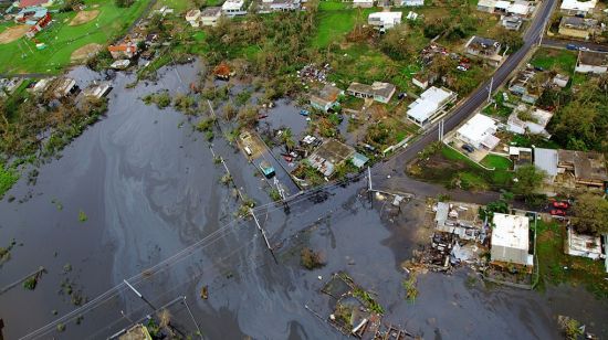 Ruined homes and flooded roads are seen from a U.S. Customs and Border Protection, Air and Marine Operations, Black Hawk helicopter during a flyover of Puerto Rico Sept. 23, after Hurricane Maria. (Customs and Border Protection photo by Kris Grogan)