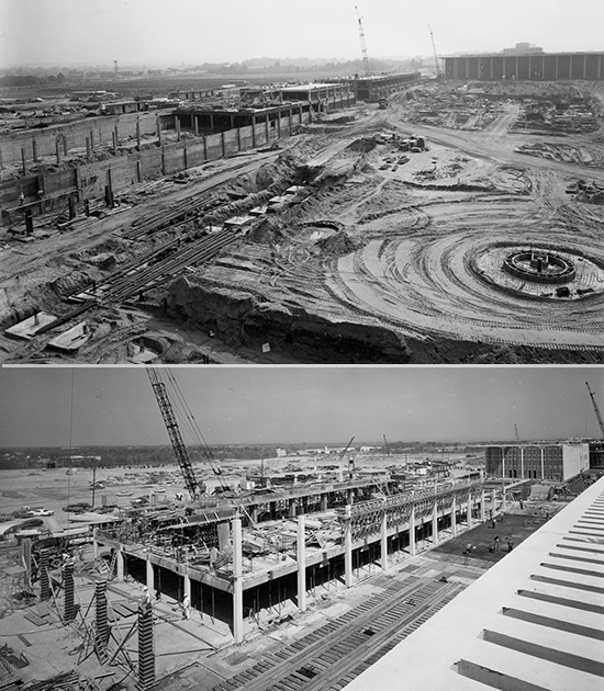 Fortunately, a photographer named E.M. Weil was on site at various times between 1964-68 to chronicle the size of the undertaking and the progress being made — despite tough winters, winds that churned up fierce walls of sand ("It is the only place where I ever saw a snowstorm and a dust storm at the same time," said one project manager), work-delaying shortages of key crafts and a few labor work stoppages.