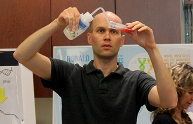 Scientist Ken Halvorsen demonstrates a strawberry DNA extraction at The RNA Institute's Community Day. |